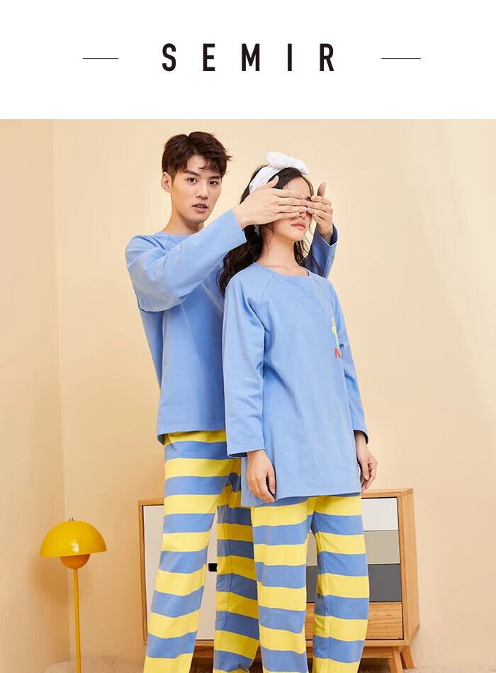 送料無料 Semir パジャマ女性パジャマ春と秋のスーツおかしいプリントトップストライプパンツ学生カップルホーム服 スプリング 春物 オータム 秋物 AE1212777778990229948