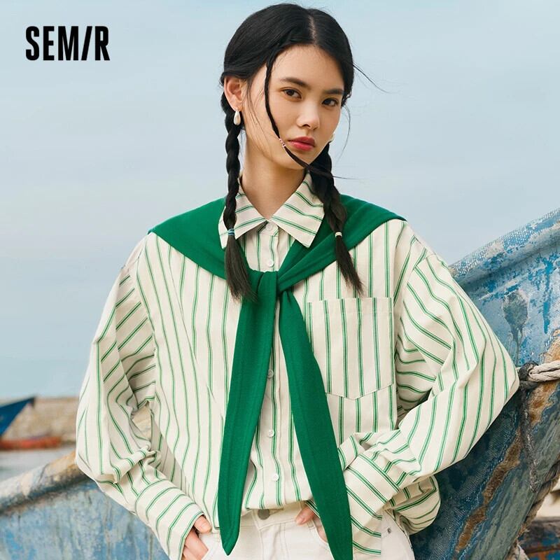 送料無料 Semir 長袖シャツ女性ミディアム丈レターショール 2023 春オーバーサイズストライプシャツレトロ ロング スプリング 春物 AE1212777743548389998