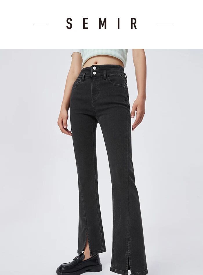 送料無料 Semir ジーンズ女性-ウエストスプリットパンツ 2023 春スタイル香港スタイルフレアパンツ気質 レッド スプリング 春物 AE1212777713168847644