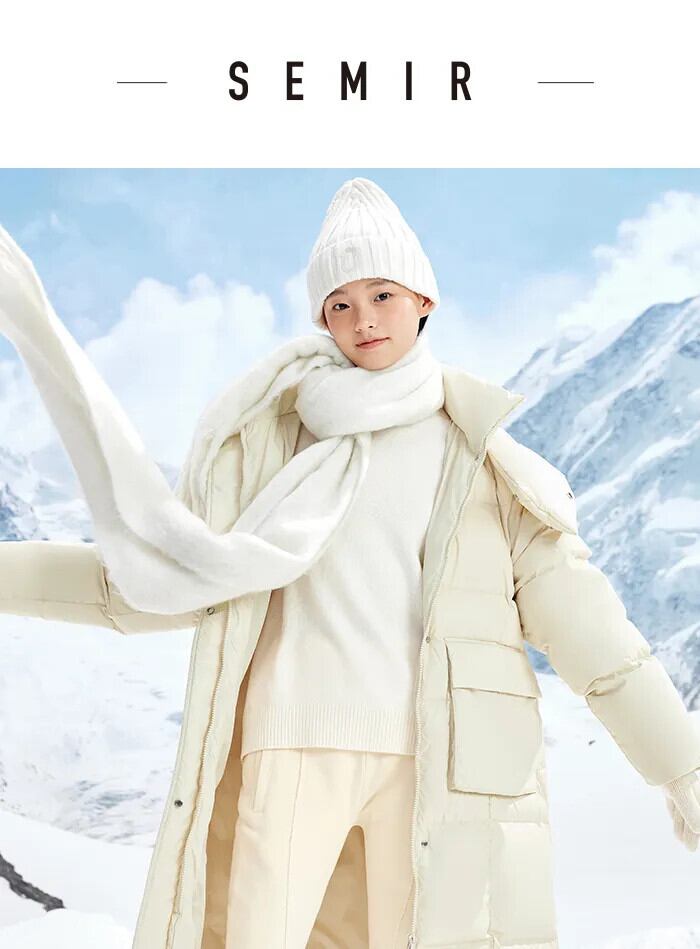 送料無料 Semir ダウンジャケット女性ロング 3 プルーフ 2023 冬フード付き無地暖かいルーズシルエットジャケット ウィンター 冬物 ソリッドカラー AE1212777726358981395
