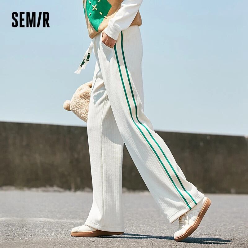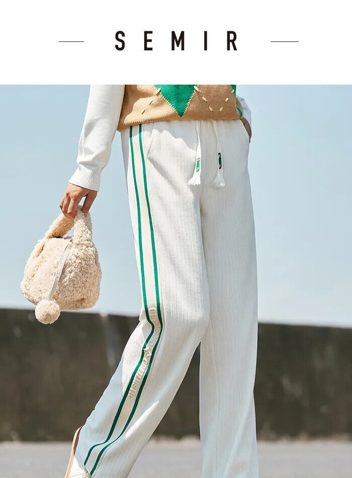 送料無料 Semir パンツ女性オフホワイトテクスチャードパンツ 2023 冬脚長レタリングレトロワイドレッグパンツ レッド ウィンター 冬物 AE1212777781101459970