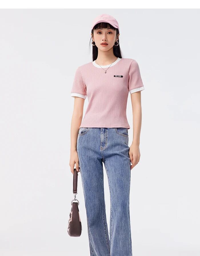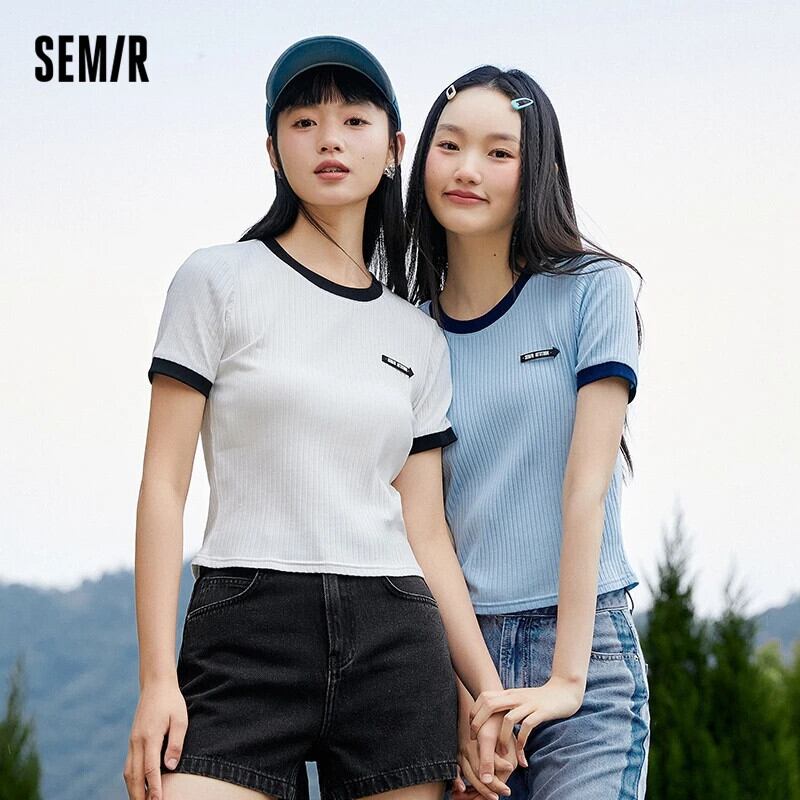送料無料 Semir 半袖 Tシャツ女性ショートコントラストレター 2023 夏タイトトップス女性 ハーフスリーブ サマー 夏物 AE1212777740654494449