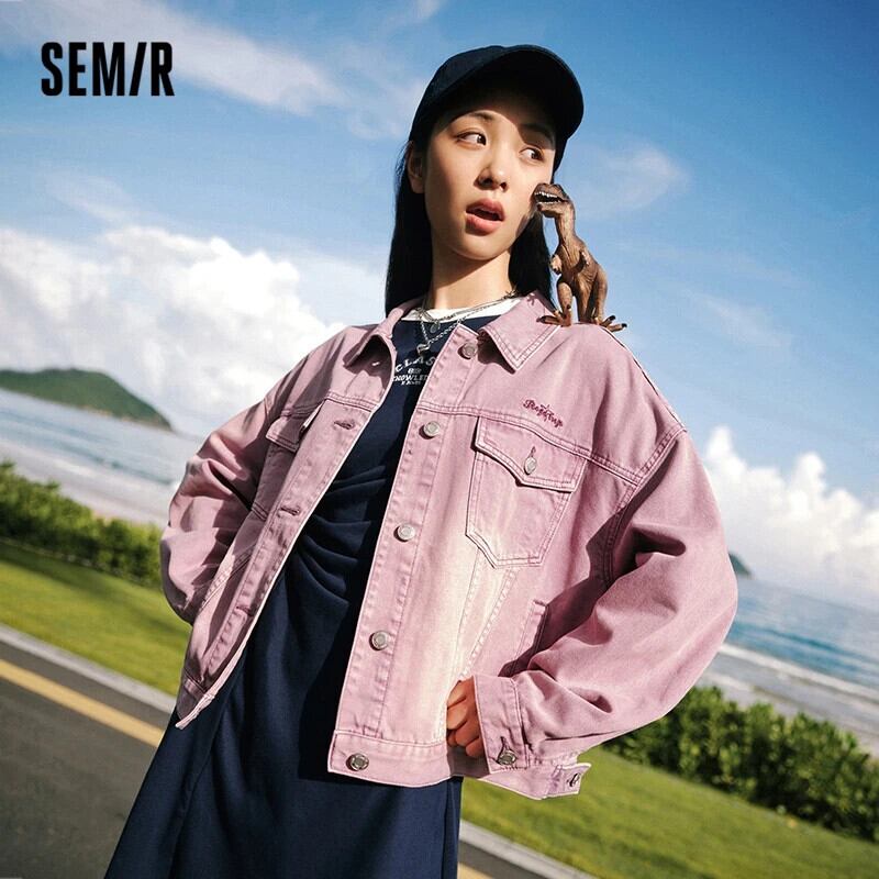 送料無料 Semir 2023 女性ジャケットデニムジャケット秋の純粋な綿ルーズ刺繍ジャケットレトロストリートスタイルジャケット女性 レッド コットン オータム 秋物 ピュア AE1212777792293738995