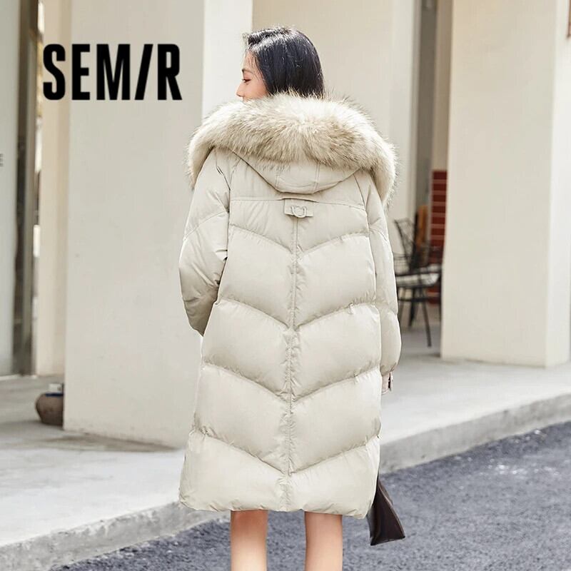 送料無料 Semir ダウンジャケット女性ロング取り外し可能なアライグマの毛皮 2023 冬フード付き厚手のパンコートルーズジャケット ウィンター 冬物 AE1212777711103100512