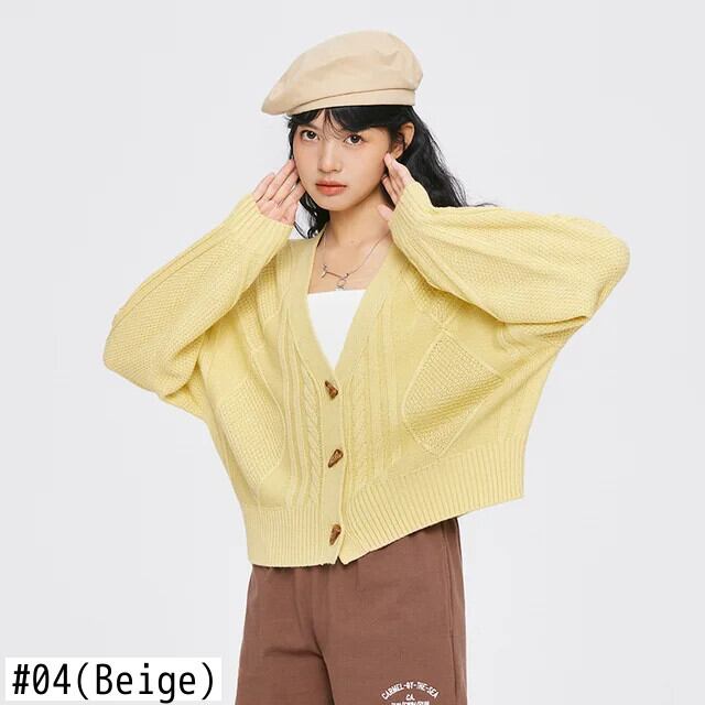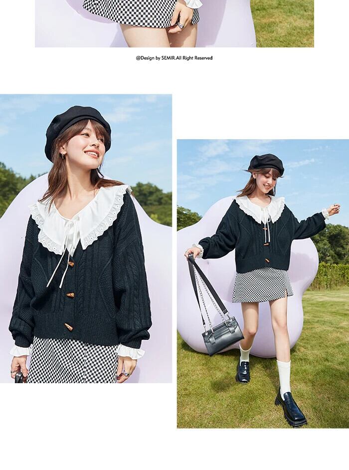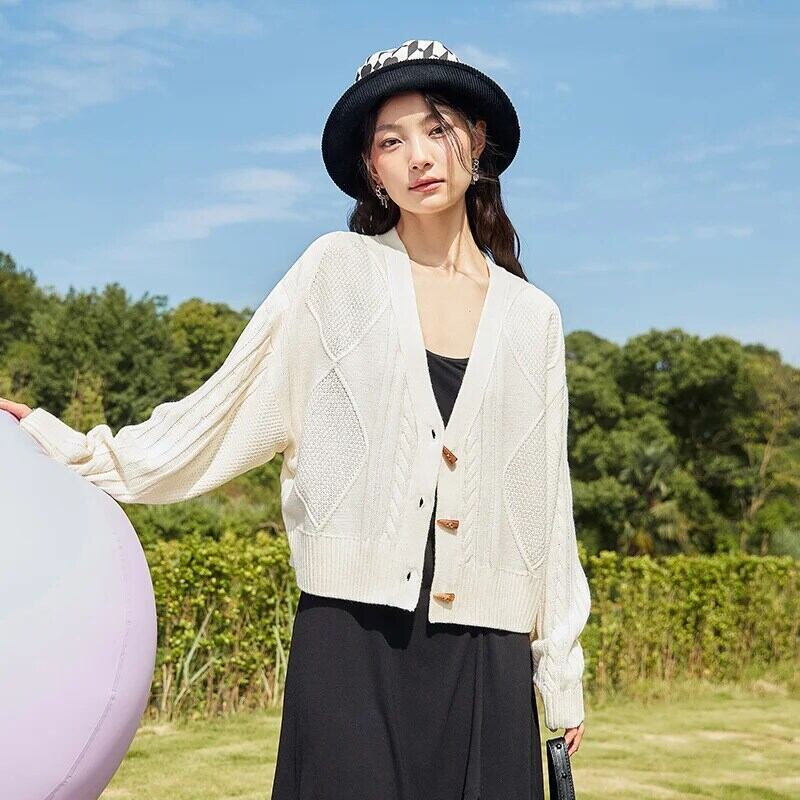 送料無料 Semir ニットウェア女性ショート V ネックケーブルホーンバックルレトロスタイル 2022 秋緩いオープン オータム 秋物 Vネック AE1212777740292686123