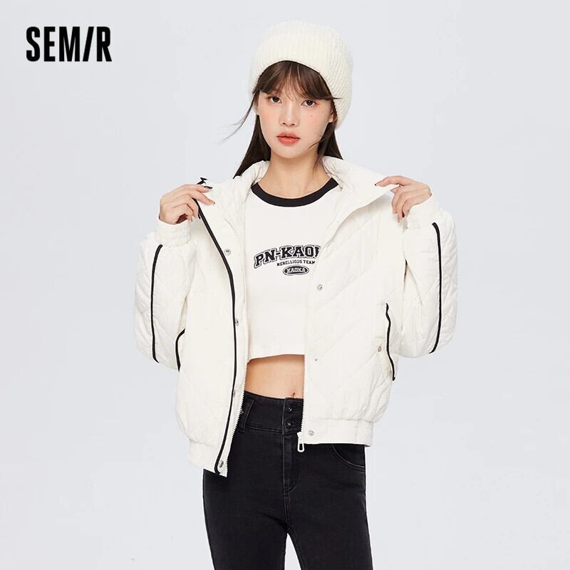 送料無料 Semir 綿コットン女性スタンドカラーカラーコントラストハンサムトップ 2022 冬ルーズコート女の子クール ウィンター 冬物 AE1212777790771644709