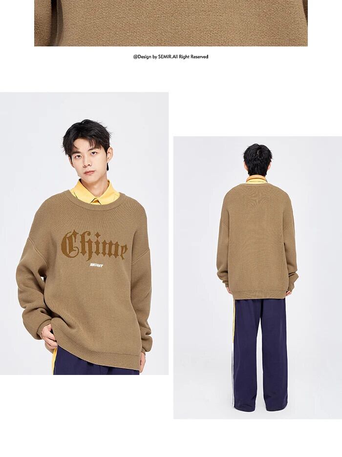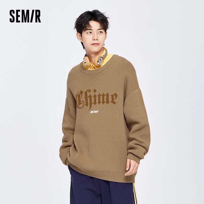 送料無料 Semir 2023 男性セーター冬トレンディな文字刺繍ルーズショルダー人格ニットセーター男性 レッド ウィンター 冬物 AE1212777782081610173