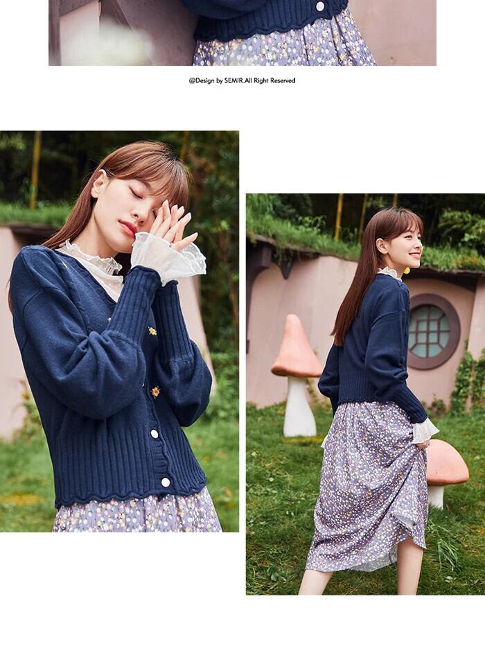 送料無料 Semir カーディガン女性ショートトップ 2021 初秋 V ネックニットセータースタイル秋服 オータム 秋物 Vネック AE1212777786371283707