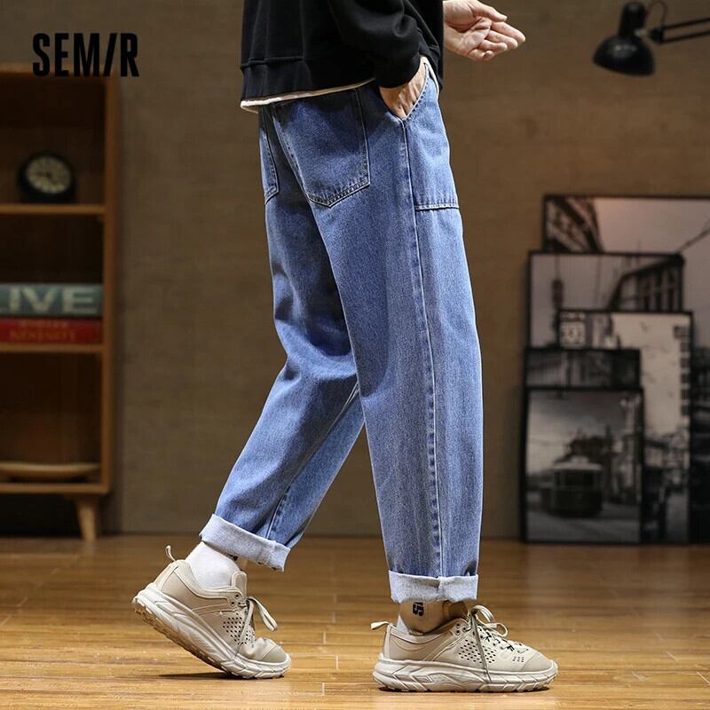 送料無料 Semir ジーンズ メンズ ツーリング スタイルセンス 2021 秋ボーイズトレンド ルーズテーパードパンツトレンド レッド オータム 秋物 AE1212777762178360318