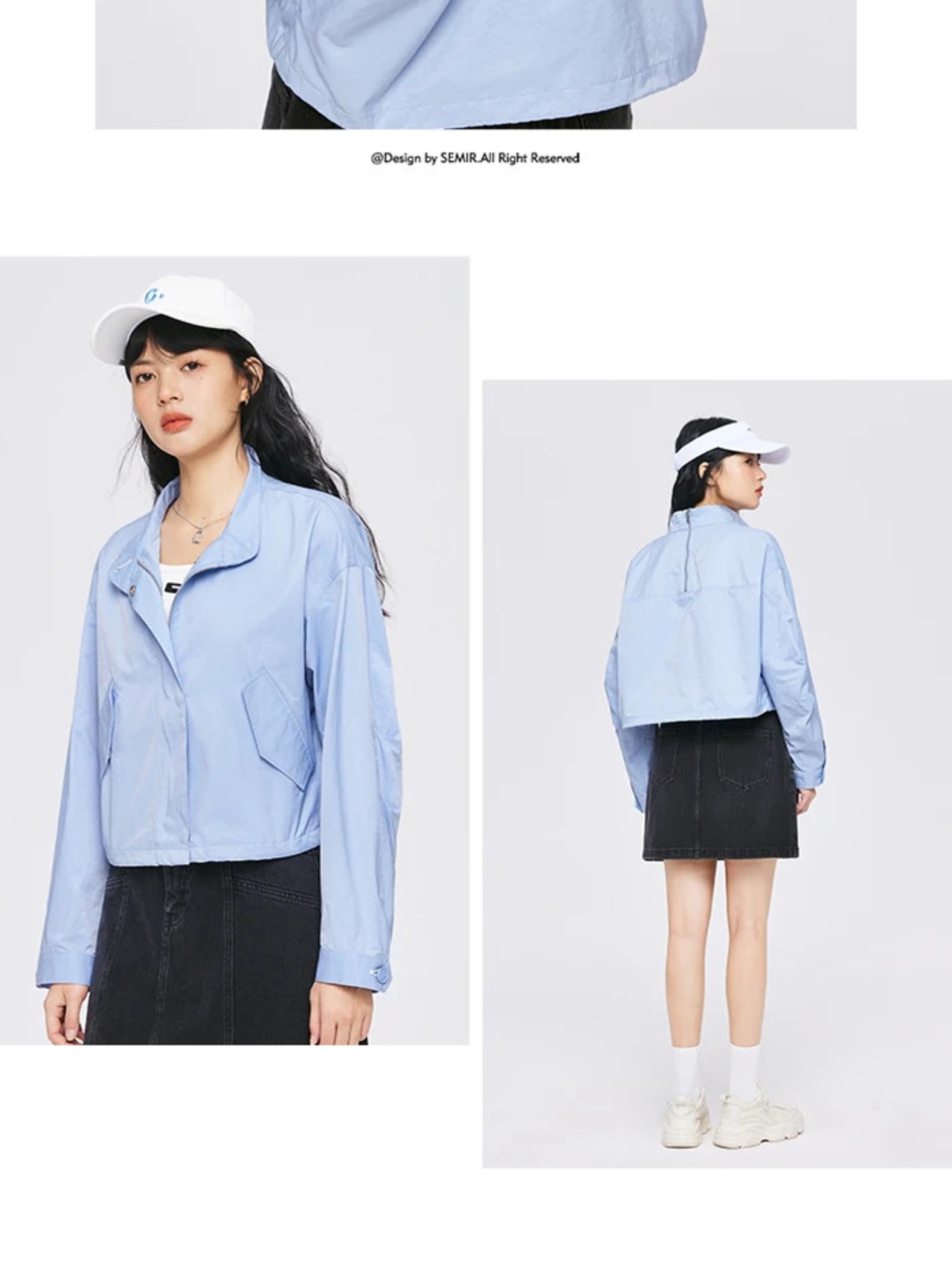送料無料 Semir アウター女性ショートルーズソリッドカラー 2023 秋スタイルランタンスリーブスタンドカラージャケット オータム 秋物 AE1212777713172997911