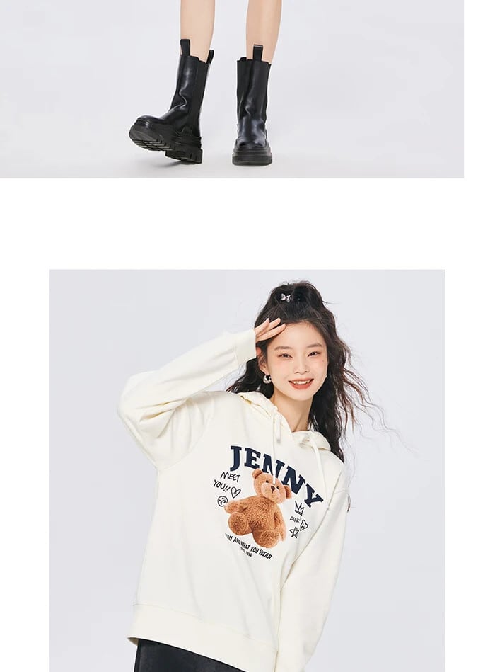 送料無料 Semir 女性トレーナーミディアムロングクマトレンドレトロルース 2023 秋プリントフード付きパーカープルオーバー女性 オータム 秋物 AE1212777791005913679