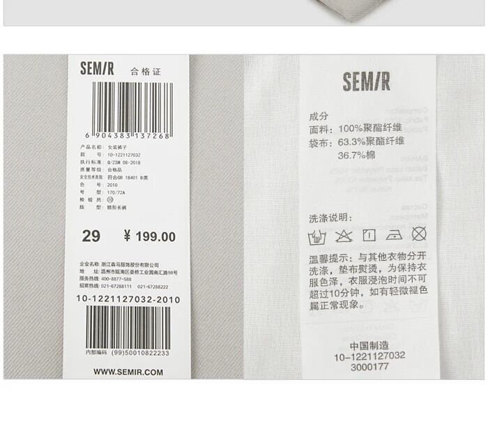送料無料 Semir スーツパンツ女性パンツ 2022 春スリム通勤黒ズボンオールマッチ女性のパンツ ブラック スプリング 春物 AE1212777796206873257
