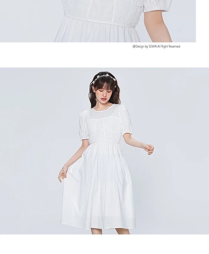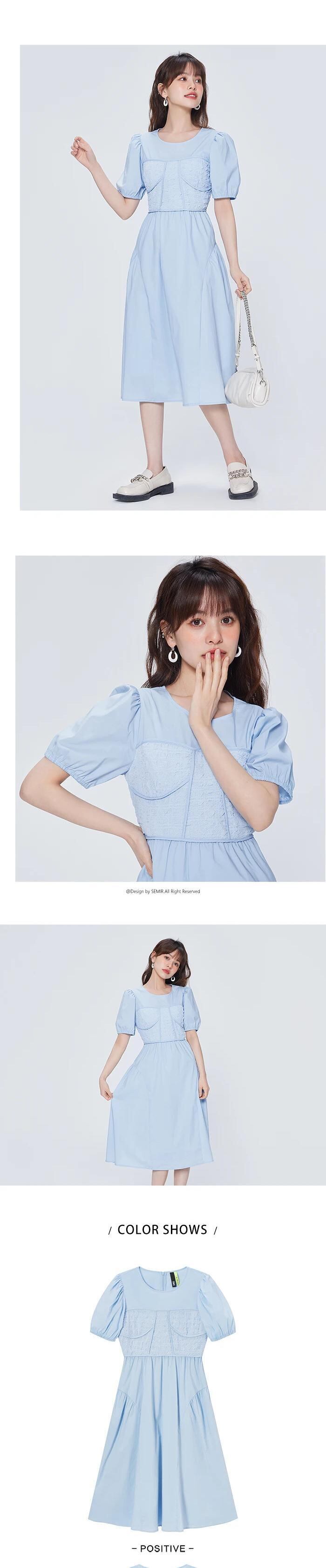 送料無料 SEMIR ドレスの女性パフスリーブステッチ甘いスタイル 2022 夏ラウンドネックドレス気質オールマッチ 大人ガーリー スウィート キュート カジュアル サマー 夏物 Oネック AE121277773865009304