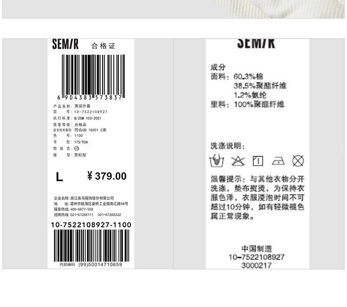 送料無料 Semir コートメンズ 2023 秋アメリカンストリートブラックプレミアムジャケットトップマン オータム 秋物 AE1212777769659228641