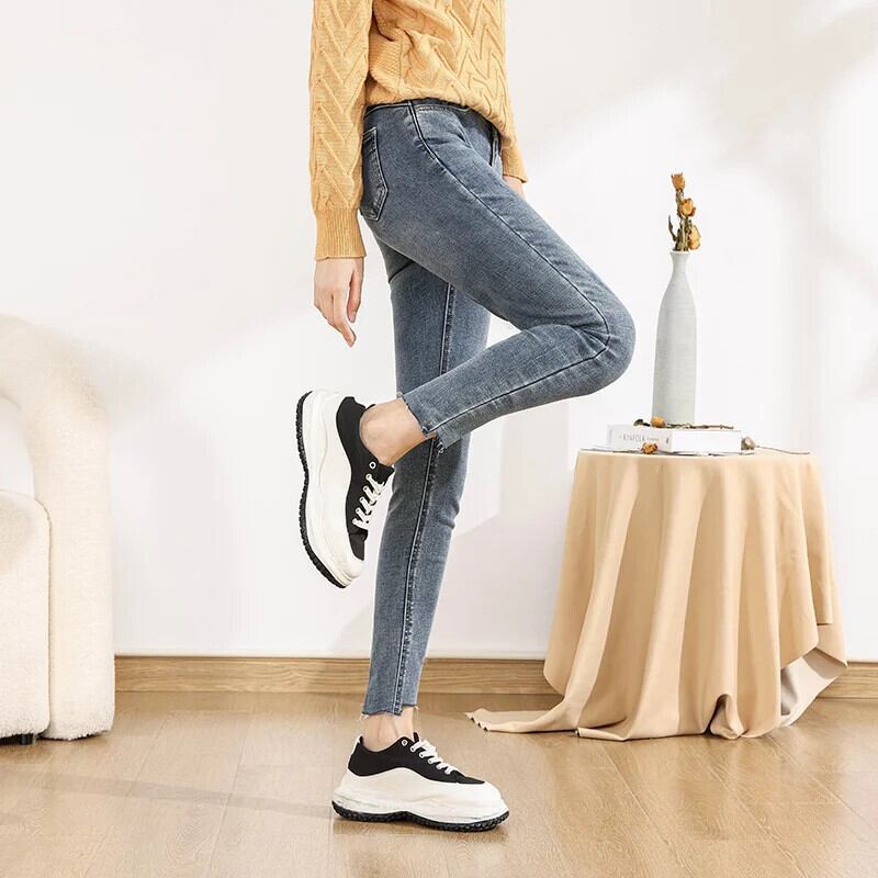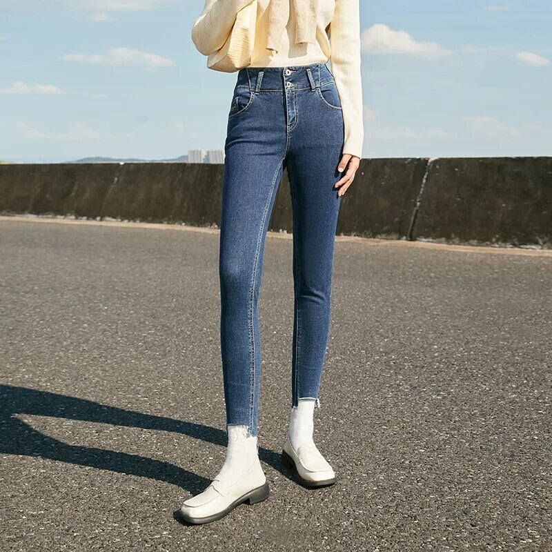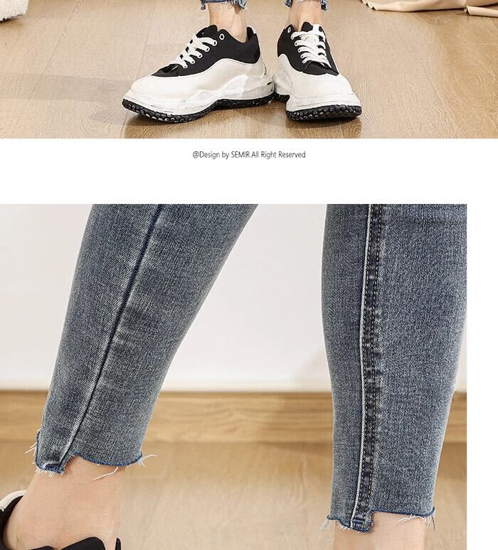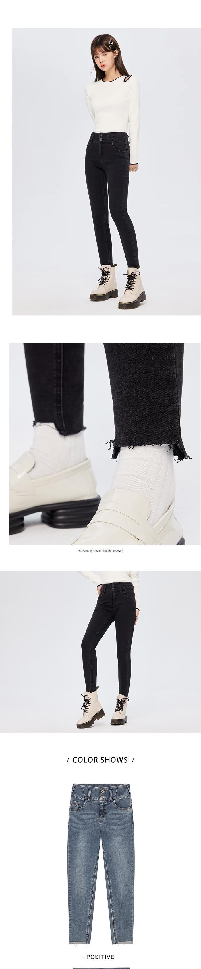 送料無料 Semir ジーンズ女性ウエストヒップ上げ生エッジパンツストリートスタイル 2022 冬スリムレギンストレンド ウィンター 冬物 AE1212777743394390138