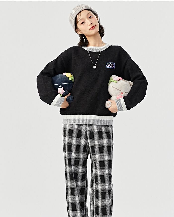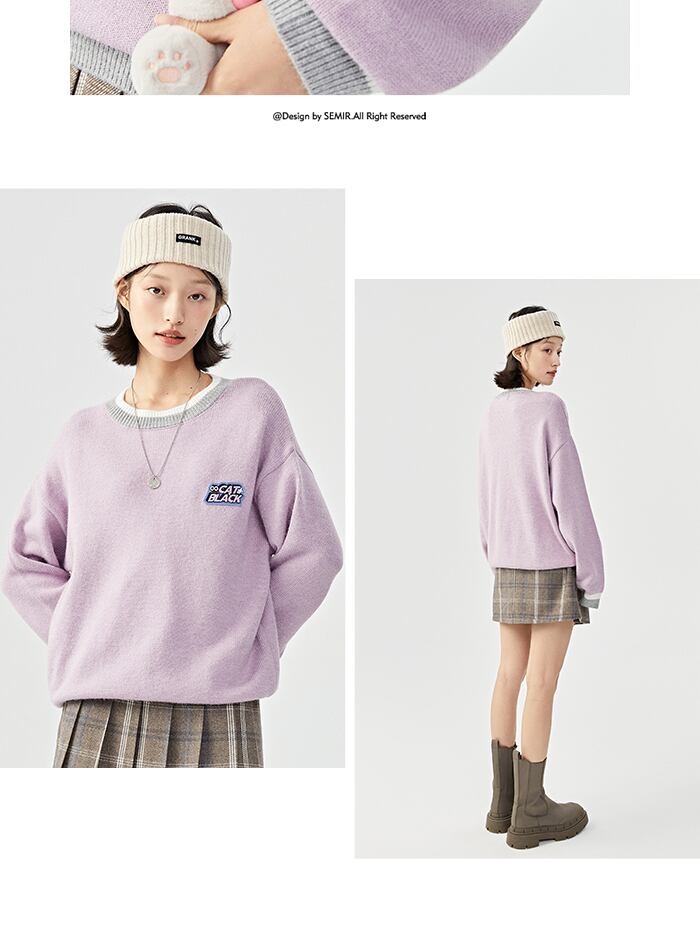 送料無料 SEMIR 女性セーター対照的な色 2021 冬ルーズ漫画セーターオールマッチ ウィンター 冬物 AE1212777784787696781