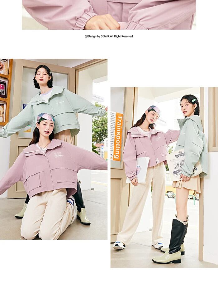 送料無料 SEMIR ジャケット女性春秋 2021 秋ルーズショートツーリングコートガールズカラージャケットトレンディな秋トップス スプリング 春物 オータム 秋物 AE1212777749299537553