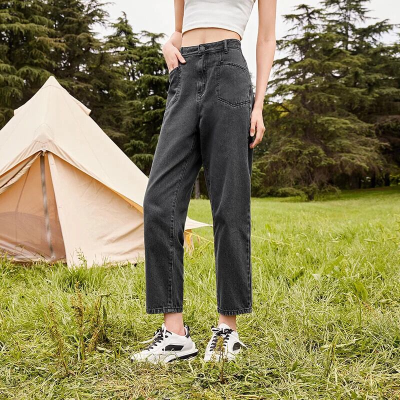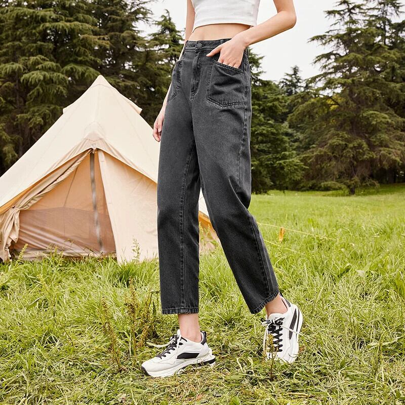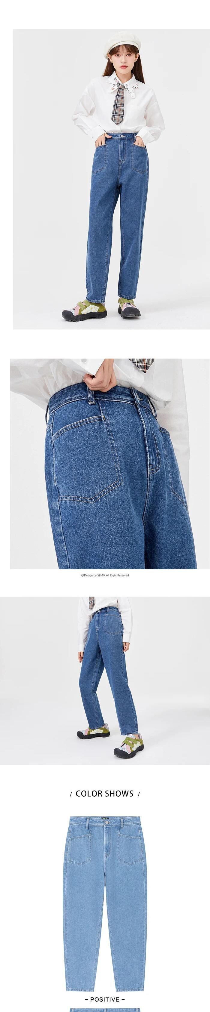 送料無料 SEMIR スリープルーフジーンズ女性 2021 秋ウエストテーパードパンツガールズブラックルーズストレートパンツストリート レッド オータム 秋物 AE1212777789894321959