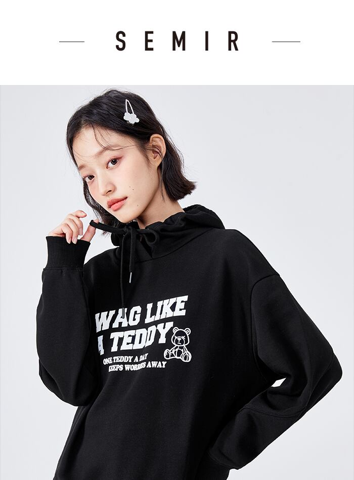 送料無料 Semir トレーナー女性レターパーカー多用途トレンド 2023 春ルーズプリントボトムパーカーパーソナライズ スプリング 春物 AE121277779192449022