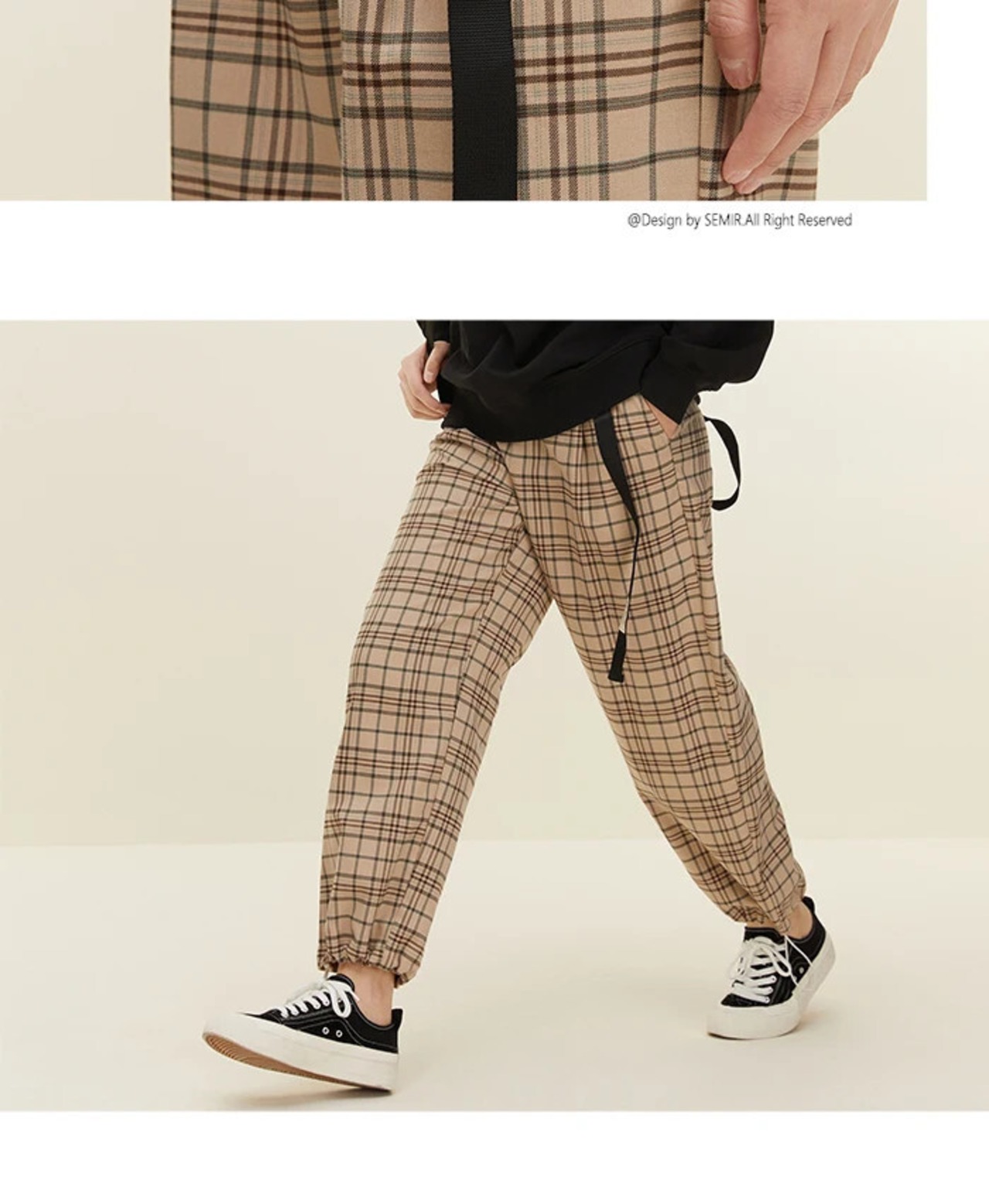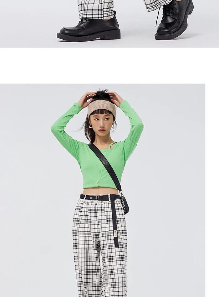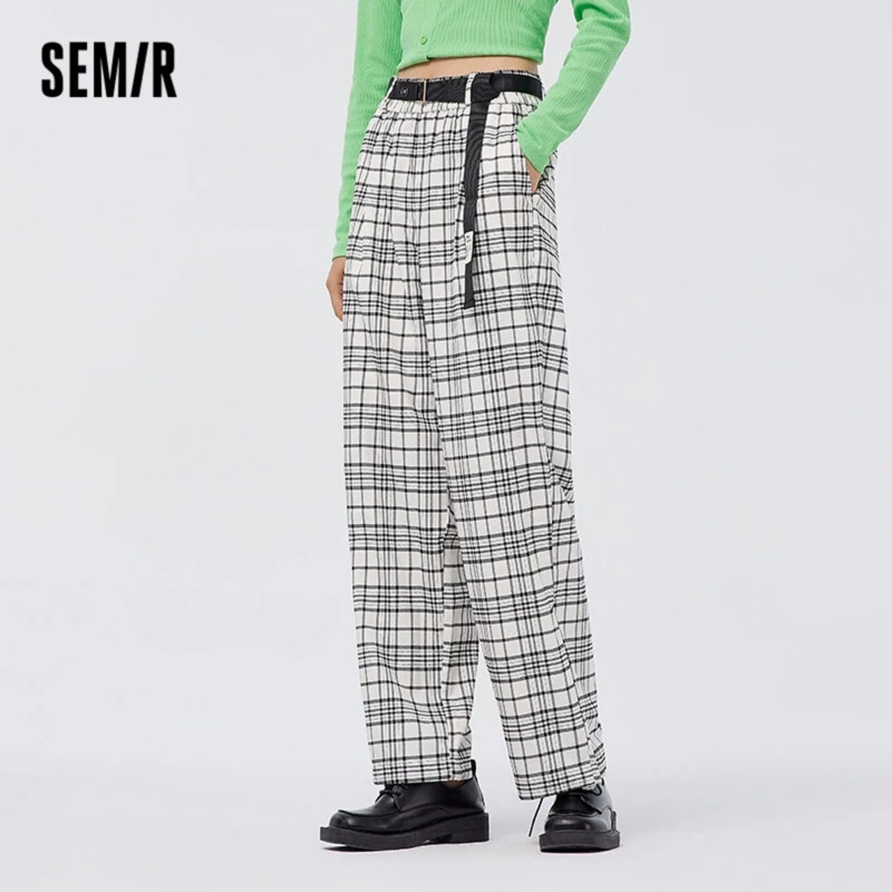 送料無料 Semir パンツ女性レギンスストレートレッグパンツ気質春文学と芸術的なチェック柄パンツレトロスタイル スプリング 春物 AE121277775973589195