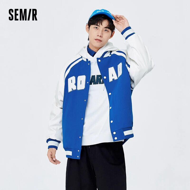 送料無料 Semir ジャケット男性コントラストカラーステッチ野球 2023 冬オーバーサイズレタージャケット ウィンター 冬物 AE1212777723140369398