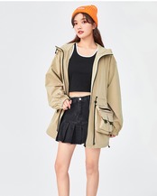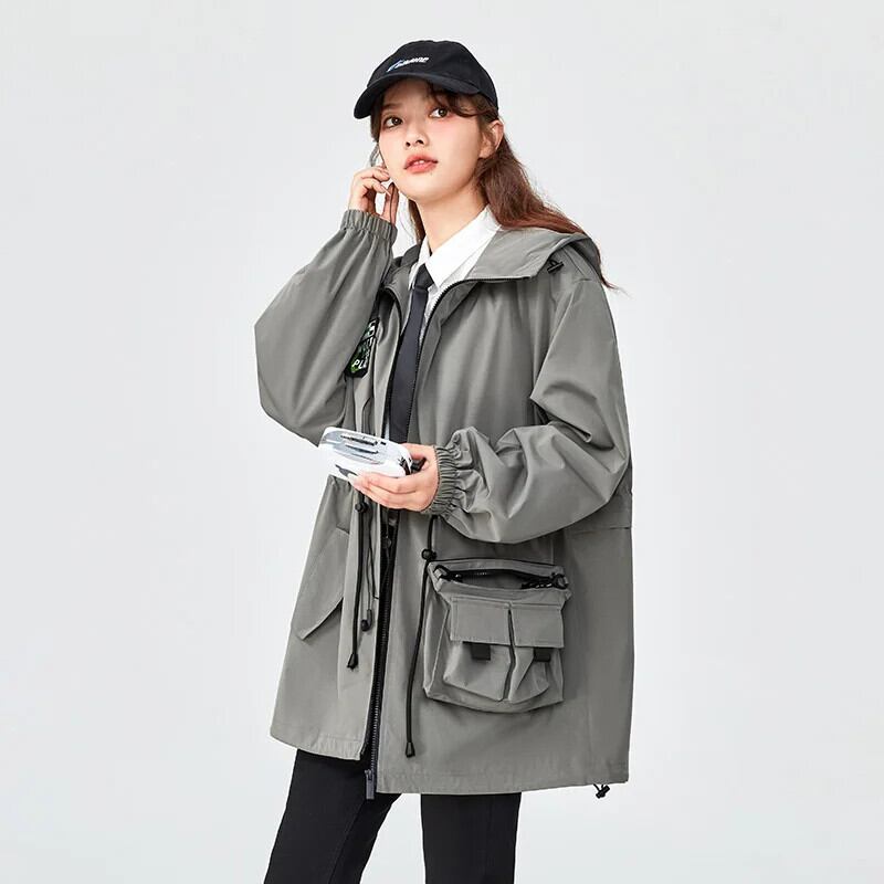 送料無料 Semir ジャケット女性ミディアムロングフード付き 2023 秋特大巾着揚げストリートワークコートクールな女性 オータム 秋物 AE1212777724229774552