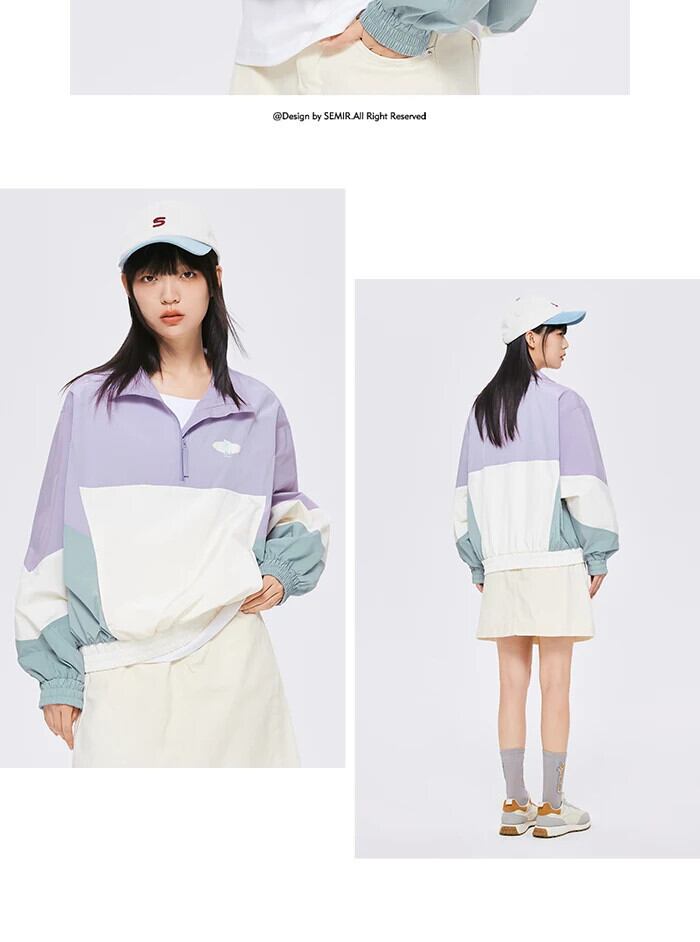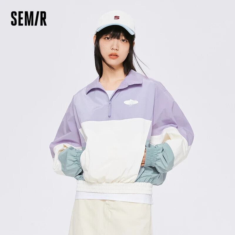 送料無料 Semir 2023 女性ジャケット St-up 襟トップカラーブロッキング特大レトロメッシュステッチコートスイートクールジャケット女性 大人ガーリー スウィート キュート カジュアル AE1212777717361452102