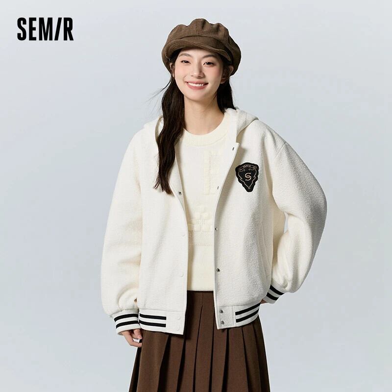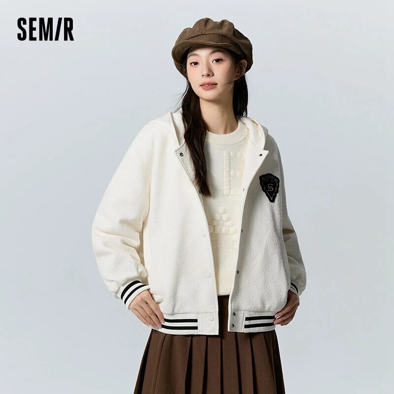 送料無料 Semir ジャケット女性テクスチャフード付きルーズ 2023 冬パッド入りジャケット ウィンター 冬物 AE1212777799090254893