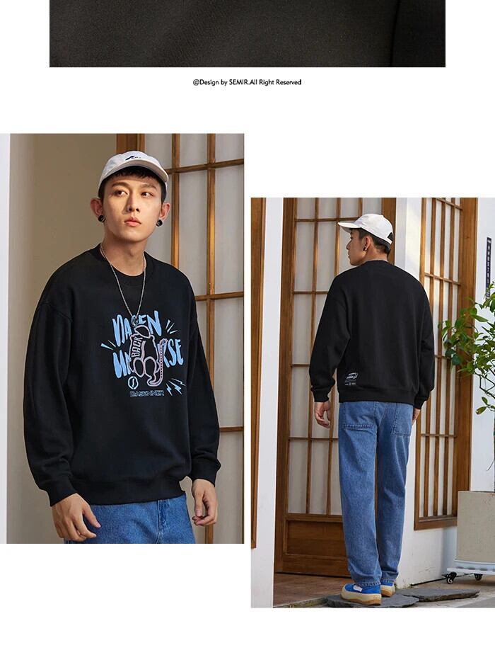 送料無料 SEMIR Me スウェットシャツ 2021 秋 オーバーサイズ クリエイティブパターン マン O ネック プルオーバー トップス オータム 秋物 Oネック AE1212777752222695683