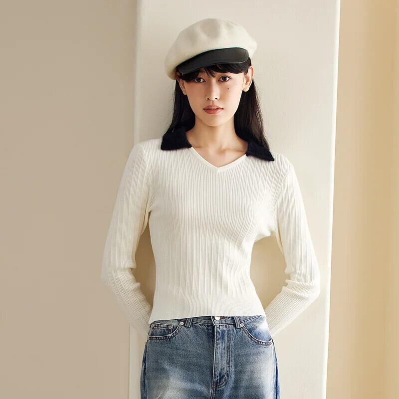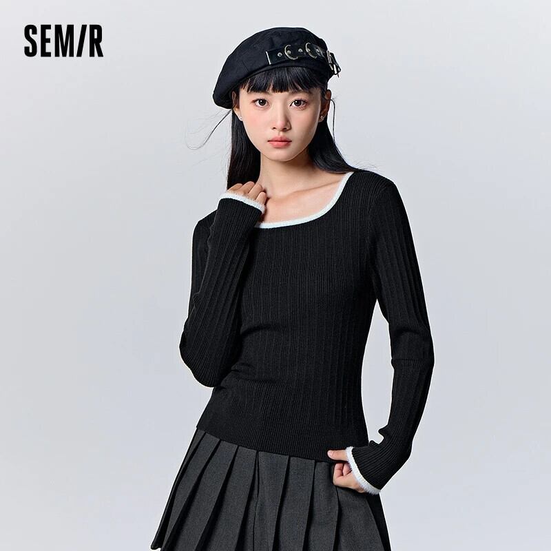 送料無料 Semir セーター女性ショートコントラストカラーポロネックスクエアネックスリムフィット 2023 冬抗菌蓄熱底市 ウィンター 冬物 スクウェア AE1212777763605984516