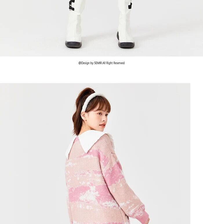 送料無料 Semir セーター女性ミディアムロングラウンドネックセーター 2021 冬ルーズベアジャカードセーター ウィンター 冬物 Oネック AE1212777757128994131
