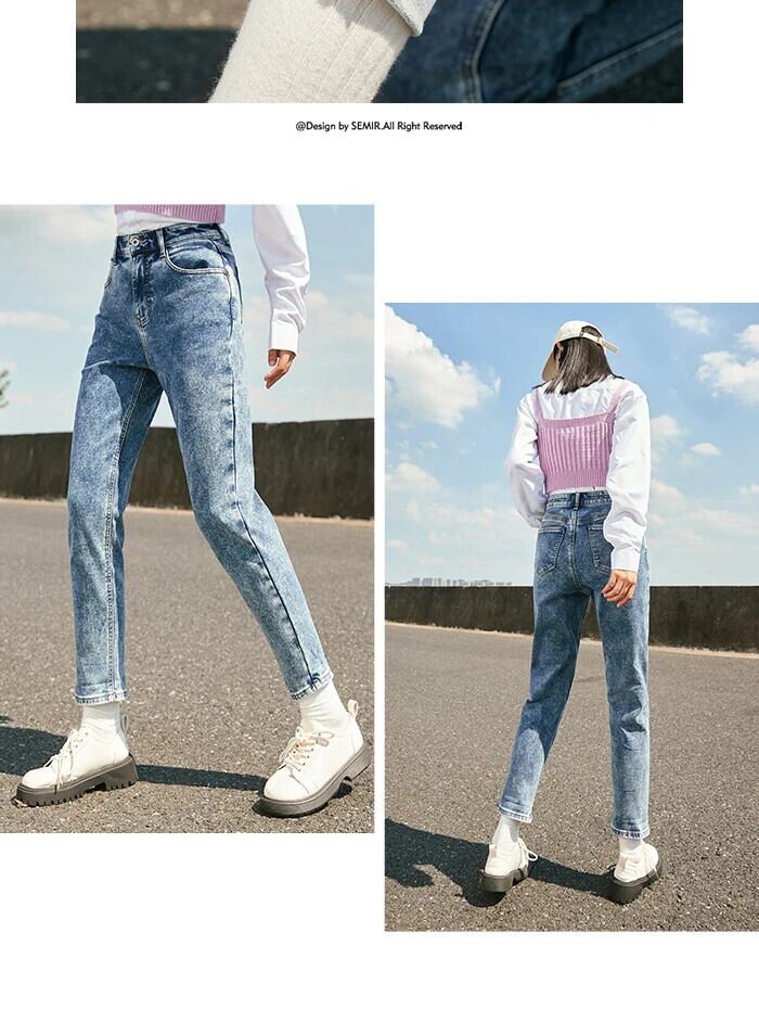 送料無料 Semir ジーンズ女性トップステッチパンツシンプルなスタイル 2023 冬スリムテーパードパンツ レッド ウィンター 冬物 AE1212777783615648374