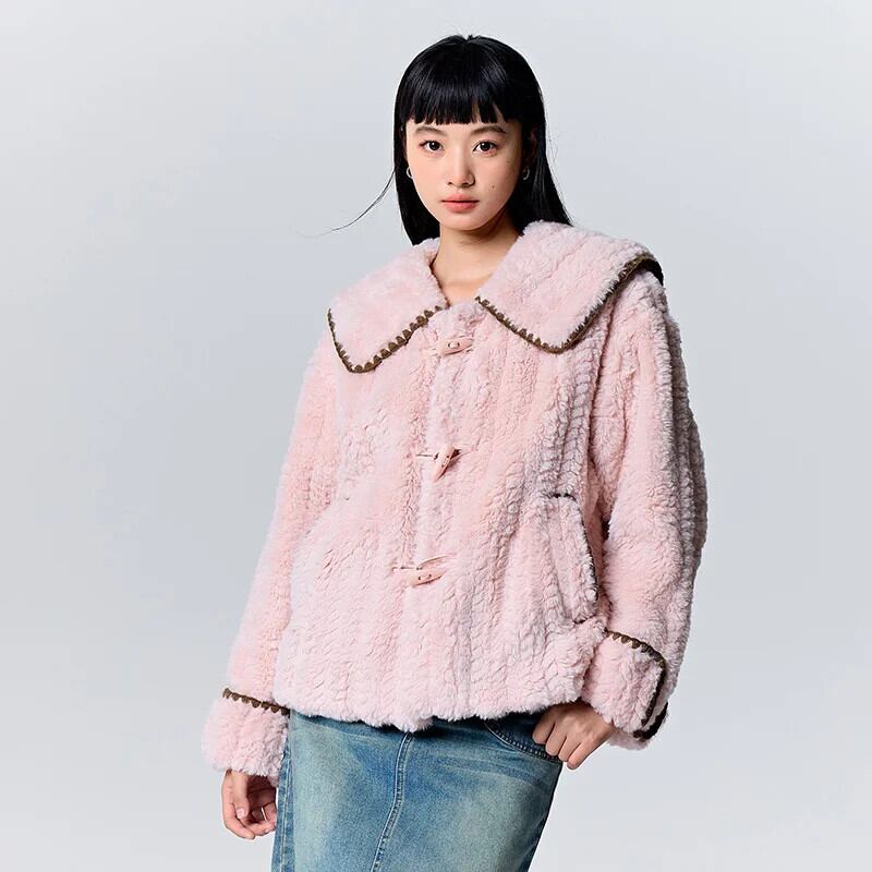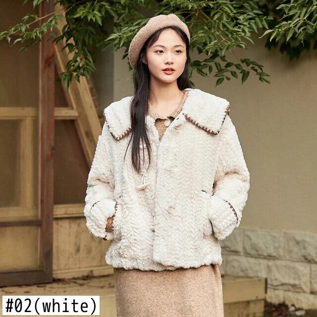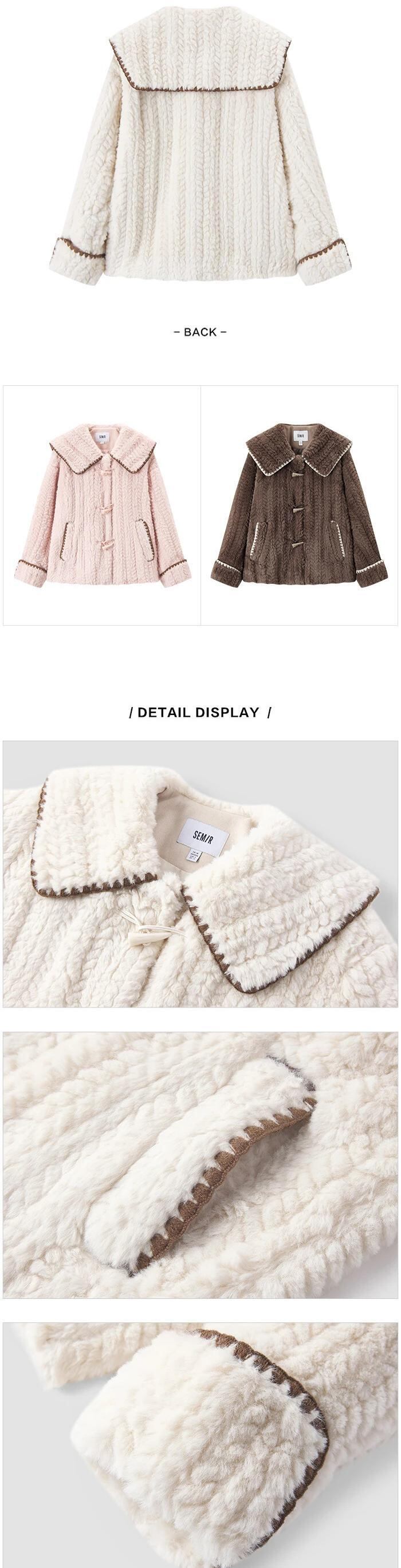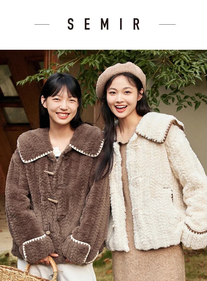 送料無料 Semir ジャケット女性模造ウサギの毛皮大きなラペル 2023 冬文学スウィートホーンボタンテクスチャジャケット 大人ガーリー キュート カジュアル ウィンター 冬物 AE1212777750374432666