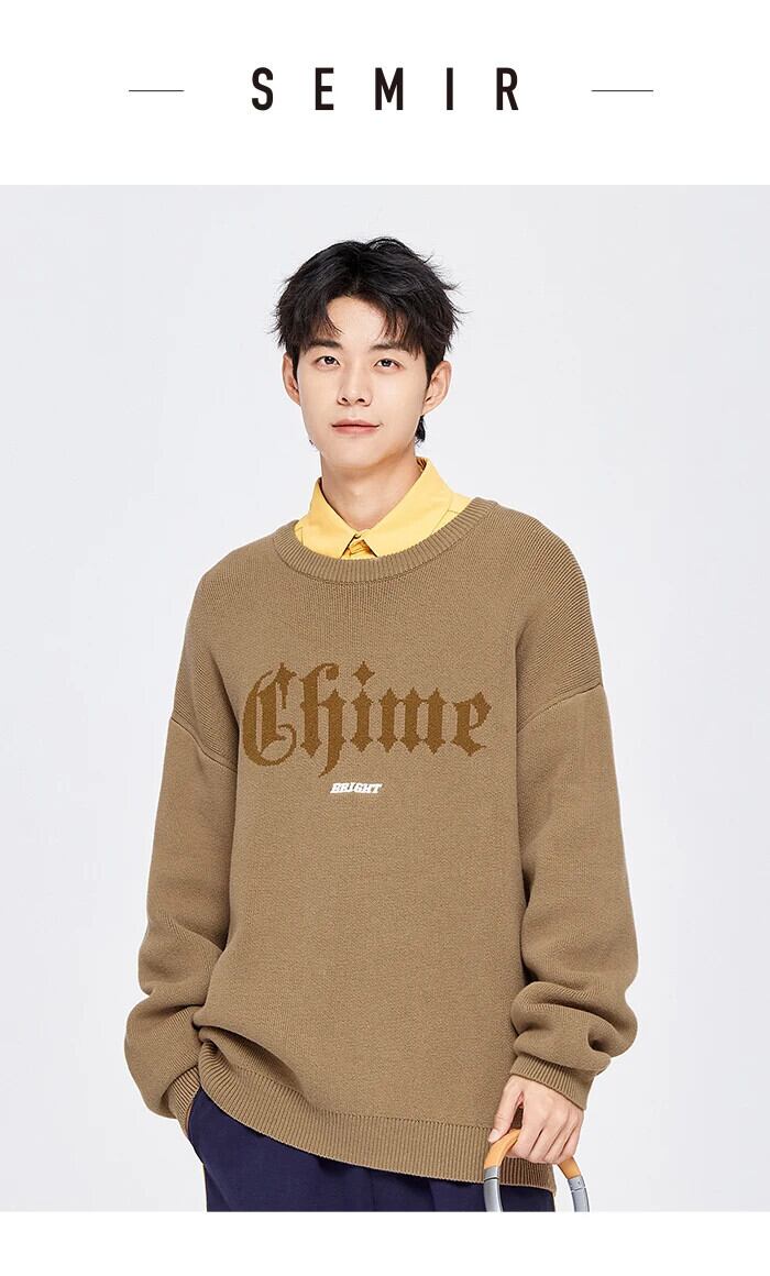 送料無料 Semir セーター メンズ - 2023 冬 ルーズショルダー パーソナリティ ニットウェア レター刺繍 トレンディセーター レッド ウィンター 冬物 AE1212777764299336858