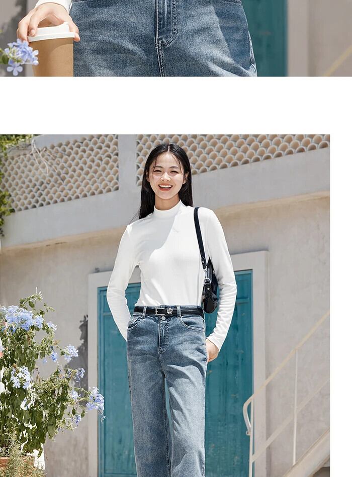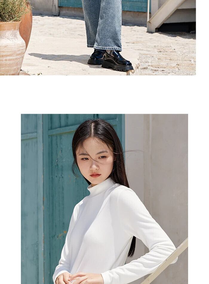 送料無料 Semir 長袖 Tシャツ女性ハーフタートルネックスリムフィット起毛 2023 冬オールマッチベースシャツ ロング ウィンター 冬物 AE1212777791803481012