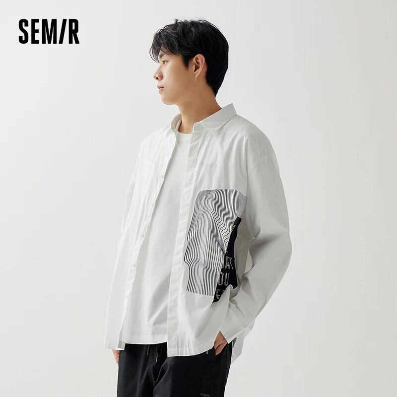 送料無料 Semir 男性シャツ長袖シャツ秋の人気のプリントルーズ Comtable 純綿通勤白シャツトップ男性 ロング ホワイト コットン オータム 秋物 ピュア AE1212777771908259967