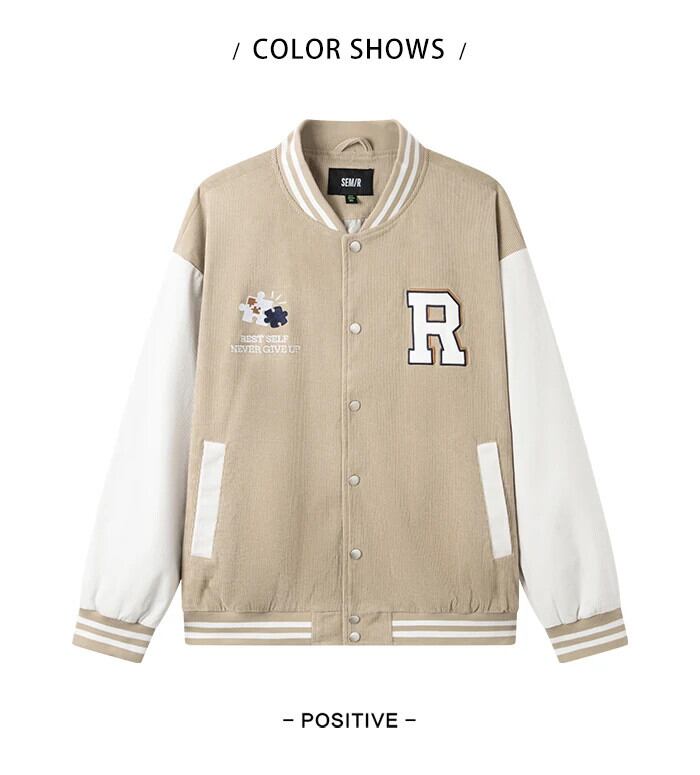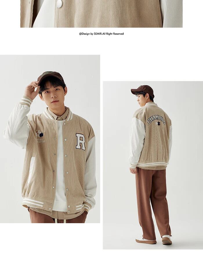 送料無料 Semir 男性ジャケット秋ルーズショルダーヒットカラーステッチ刺繍パターントップ野球ジャケット オータム 秋物 AE1212777793854739463