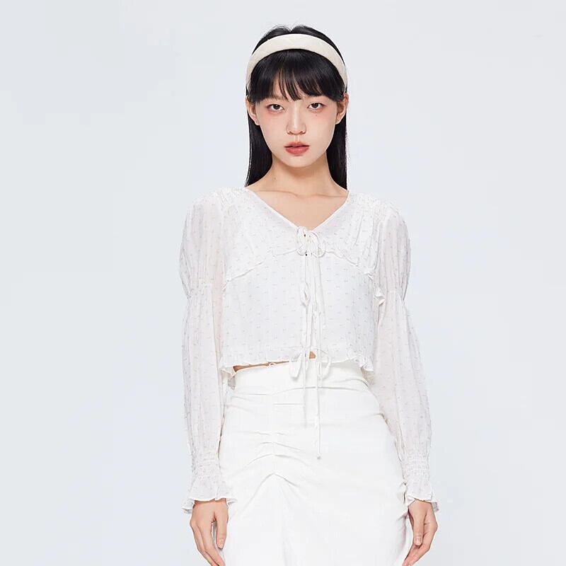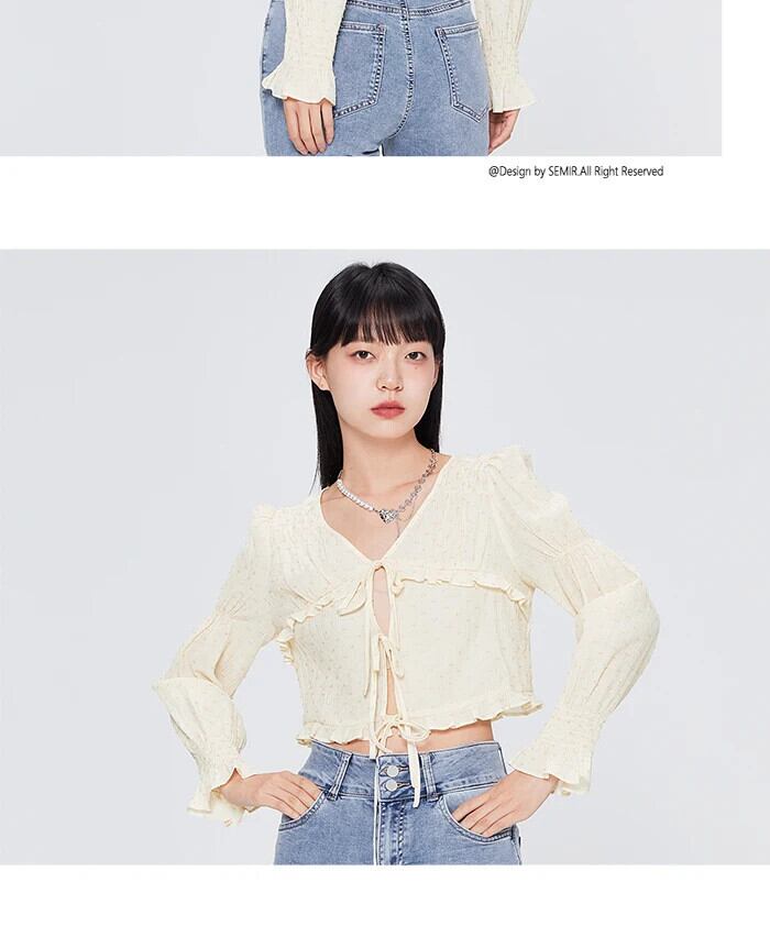 送料無料 Semir 長袖シャツ女性ショートストリング耳文学 2022 夏優しいスリムテクスチャシャツ ロング サマー 夏物 AE1212777732053483915