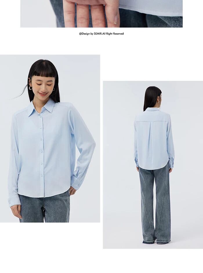 送料無料 Semir 長袖シャツ女性刺繍気質 2023 春の基本的な多用途ブラウス女性の通勤 ロング スプリング 春物 AE1212777752533002130