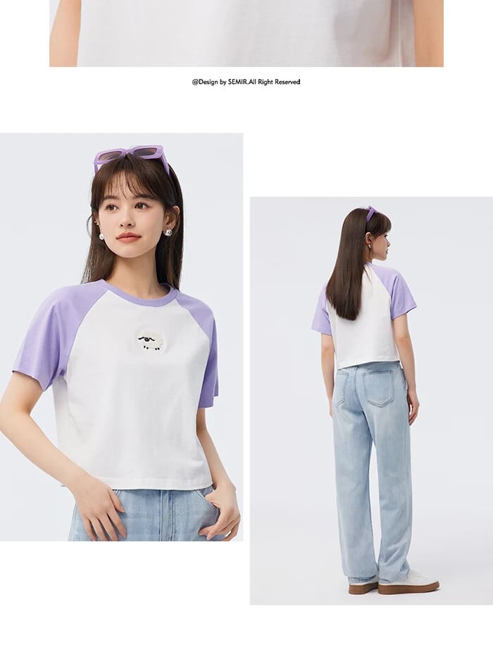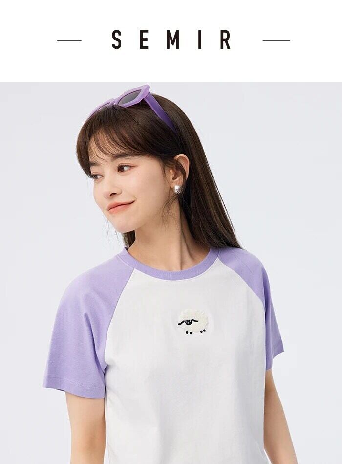 送料無料 Semir 半袖 Tシャツ女性ショートスパイシーマンコントラストパターン 2023 夏刺繍かわいいトップ ハーフスリーブ 大人ガーリー スウィート キュート カジュアル サマー 夏物 AE1212777758957496285