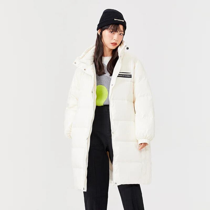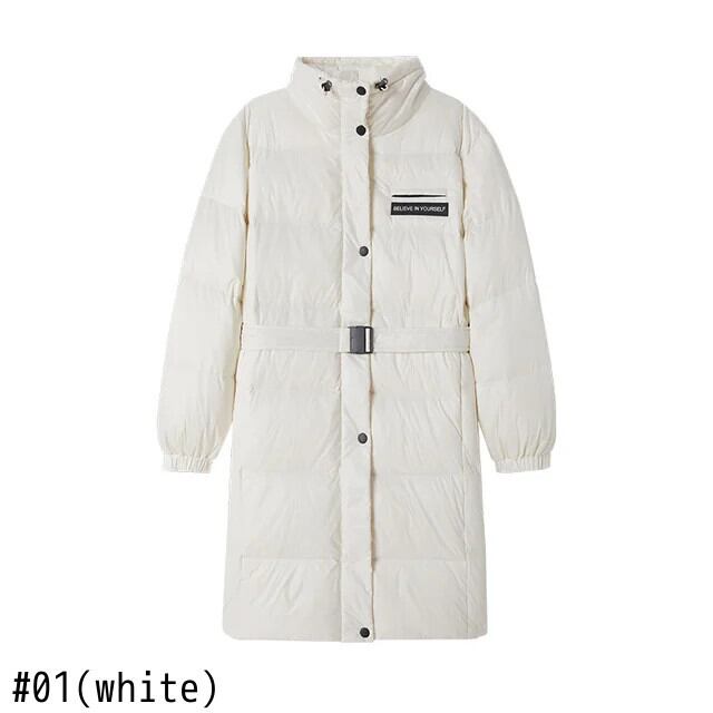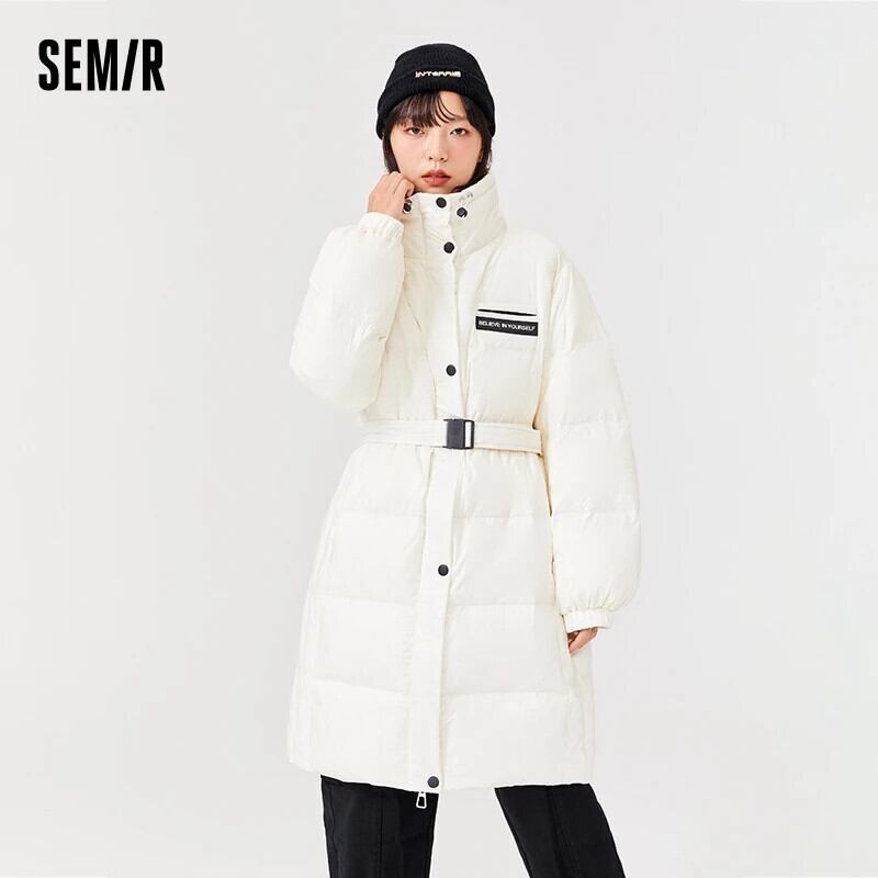 送料無料 Semir ダウンジャケット女性ミディアムロングスタンドカラーウエストジャケット 2021 冬白スタイルルーズダウンジャケット ホワイト ウィンター 冬物 AE1212777733153010378