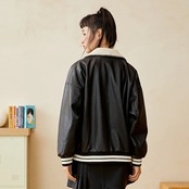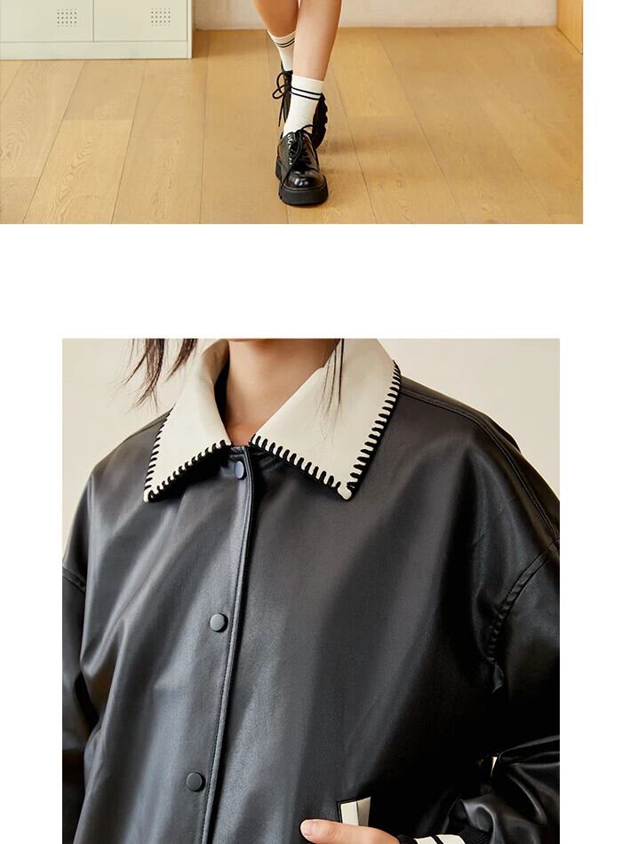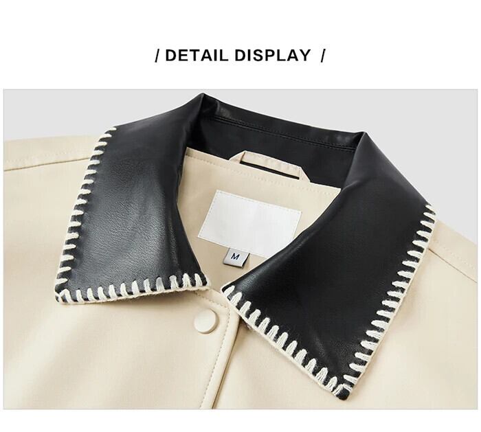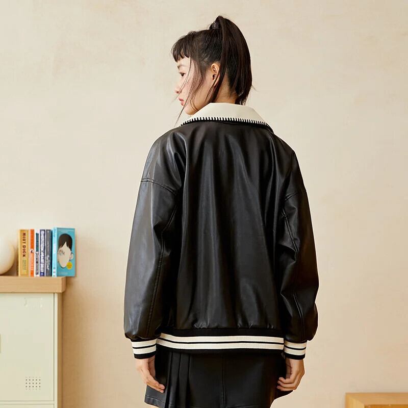 送料無料 Semir ジャケット女性ラペルコントラストカラー気質秋 2023 ルーズトレンディシック PU 模造レザージャケット オータム 秋物 AE1212777742498400461