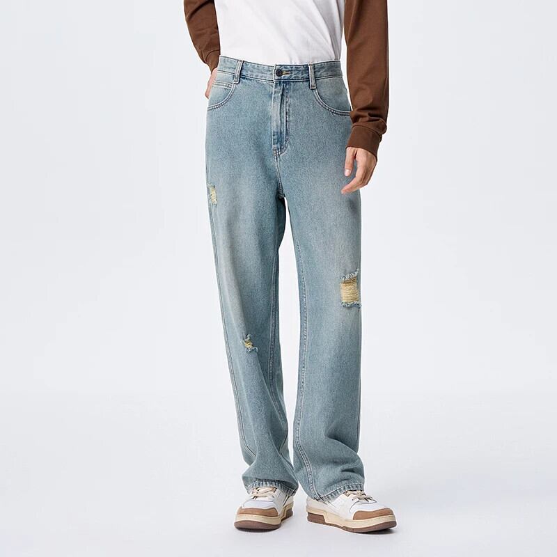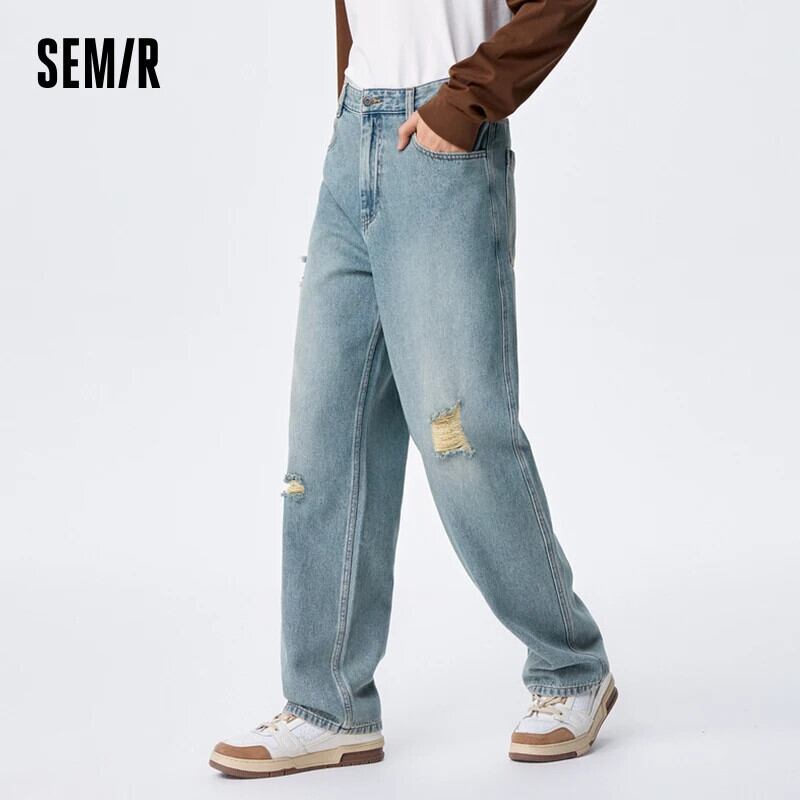 送料無料 Semir 2023 男性ジーンズ秋 Clic 洗浄クラフトルーズストレートズボン可能リッピング穴ジーンズ男性 オータム 秋物 AE1212777716380097307