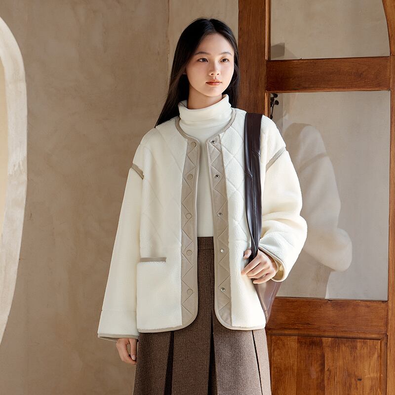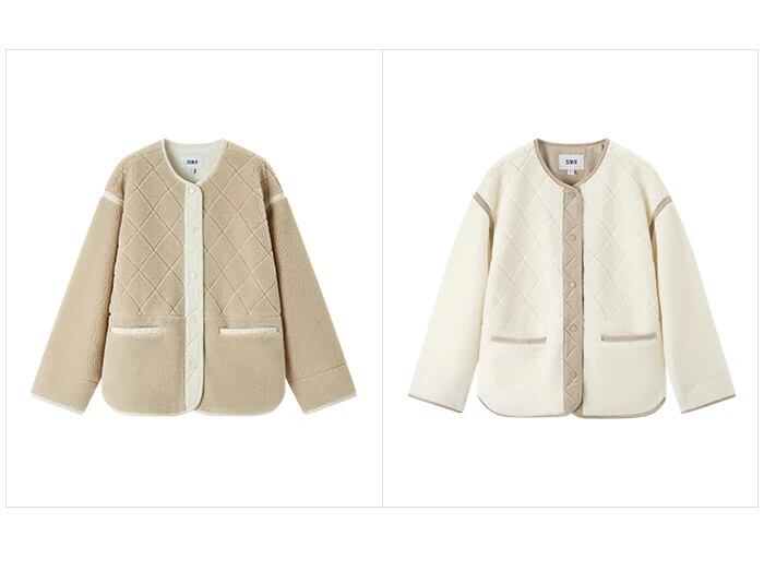 送料無料 Semir コート女性ミッドレングス菱形レトロ 2023 冬模造ラムウールカラーマッチングジャケット ウィンター 冬物 AE1212777730006877650