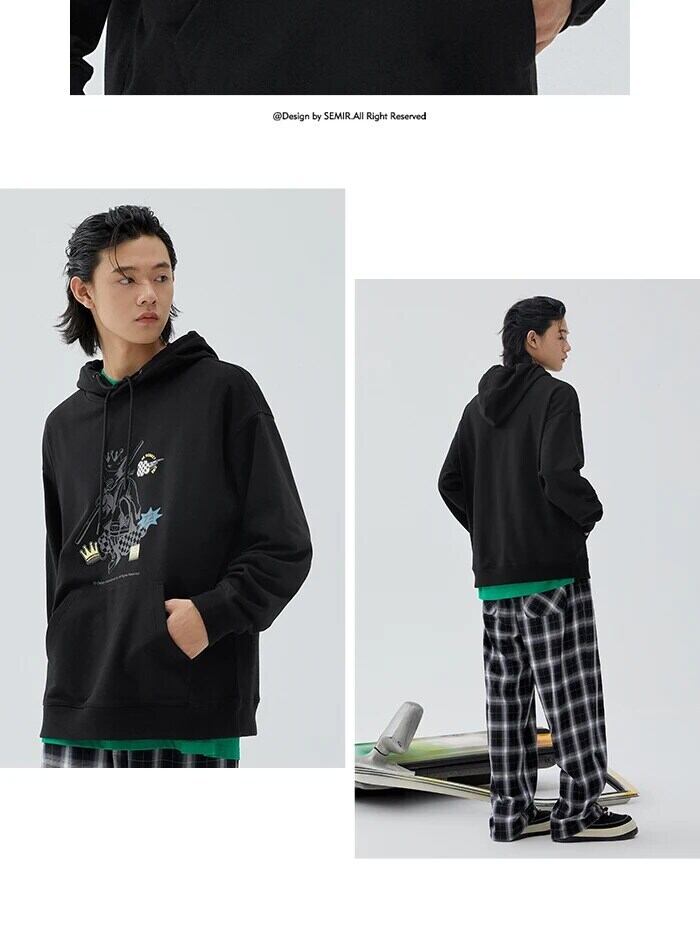 送料無料 Semir メンズ セーター パーソナライズされた漫画プリント ルーズ ショルダー 巾着 フード付き デイリー セーター パーソナライズされたトレンディ トップ AE1212777779739189228