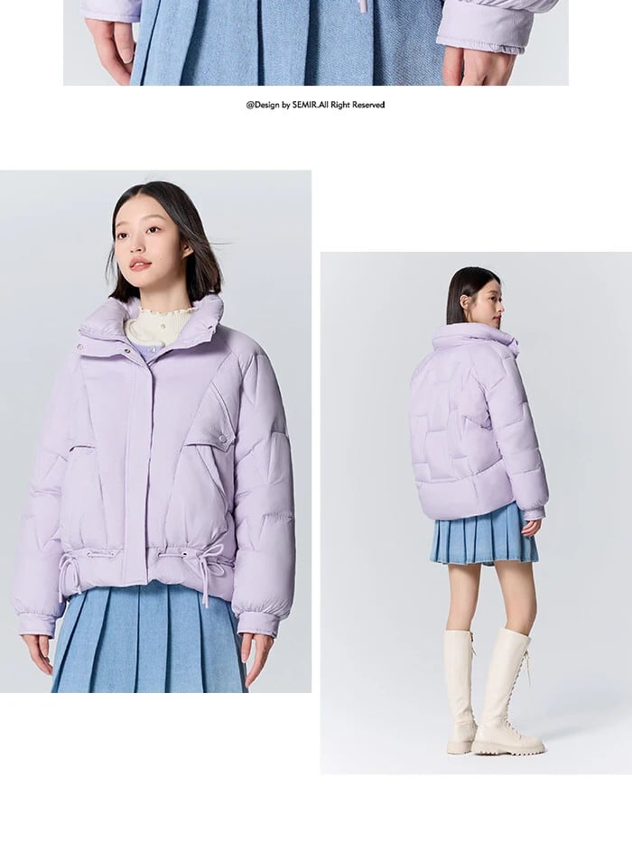送料無料 Semir コットンジャケット女性花柄ジャカードラグラン袖ルーズ 2023 冬ソフトワックス巾着コットンジャケット ウィンター 冬物 AE1212777718263088575