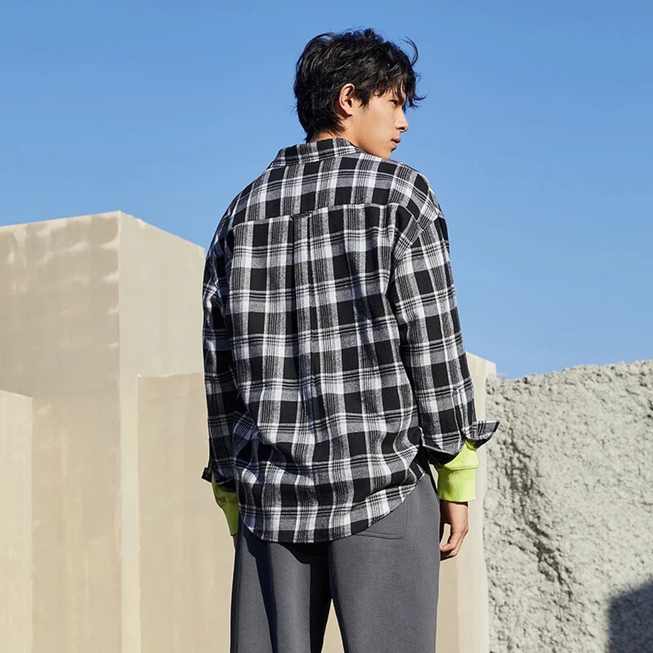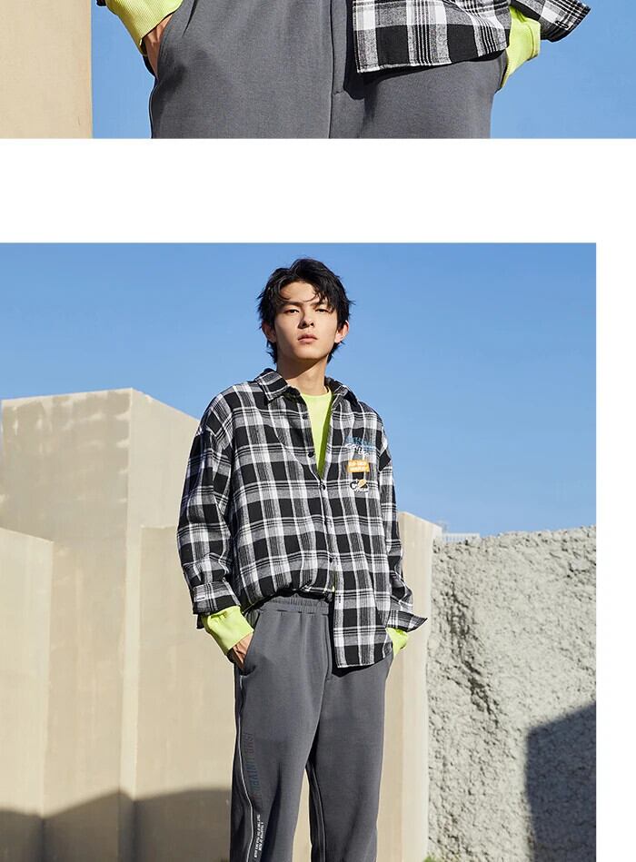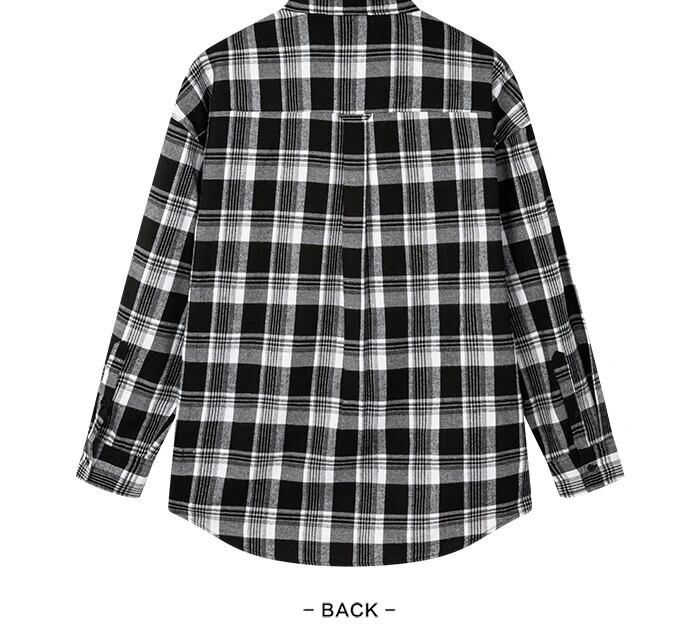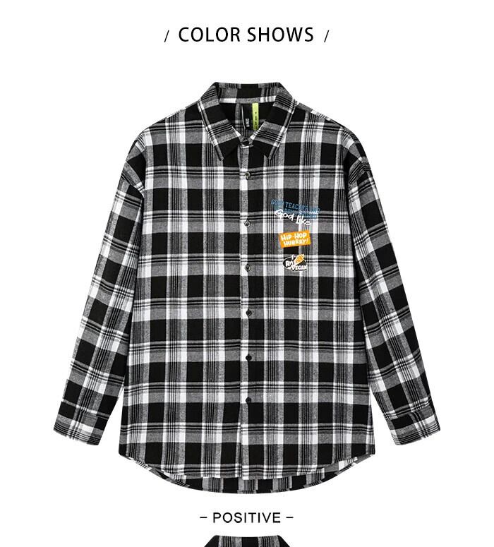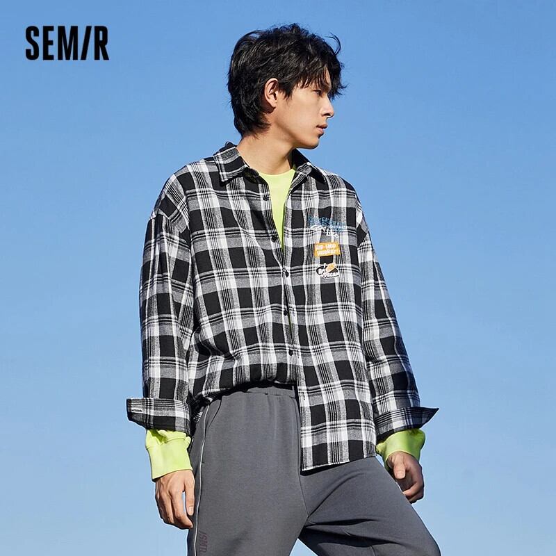 送料無料 Semir 長袖シャツ男性レター印刷ルーズ 2022 早春バージョン黒と白のチェック柄シャツ男のシャツ ロング ホワイト ブラック スプリング 春物 AE1212777717198417084