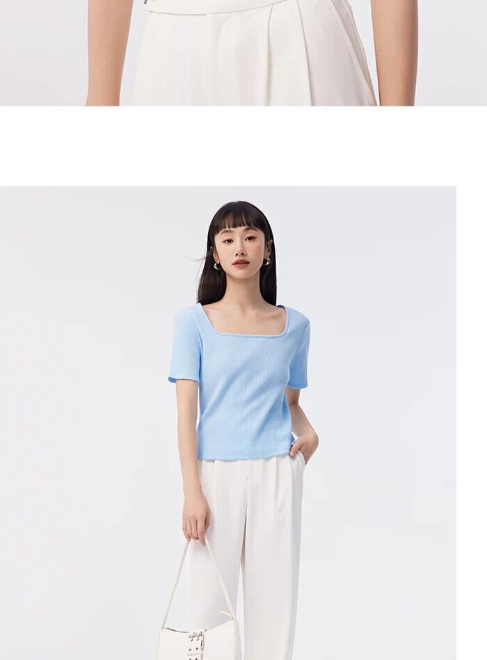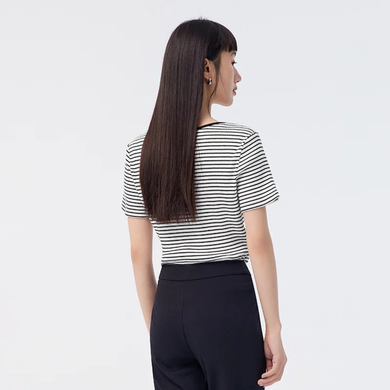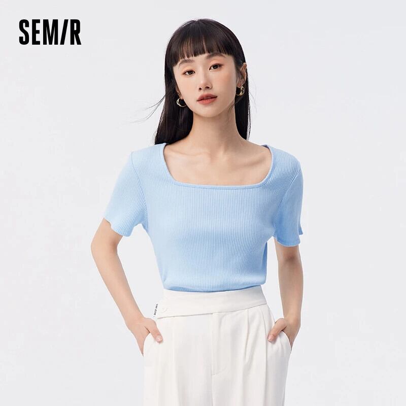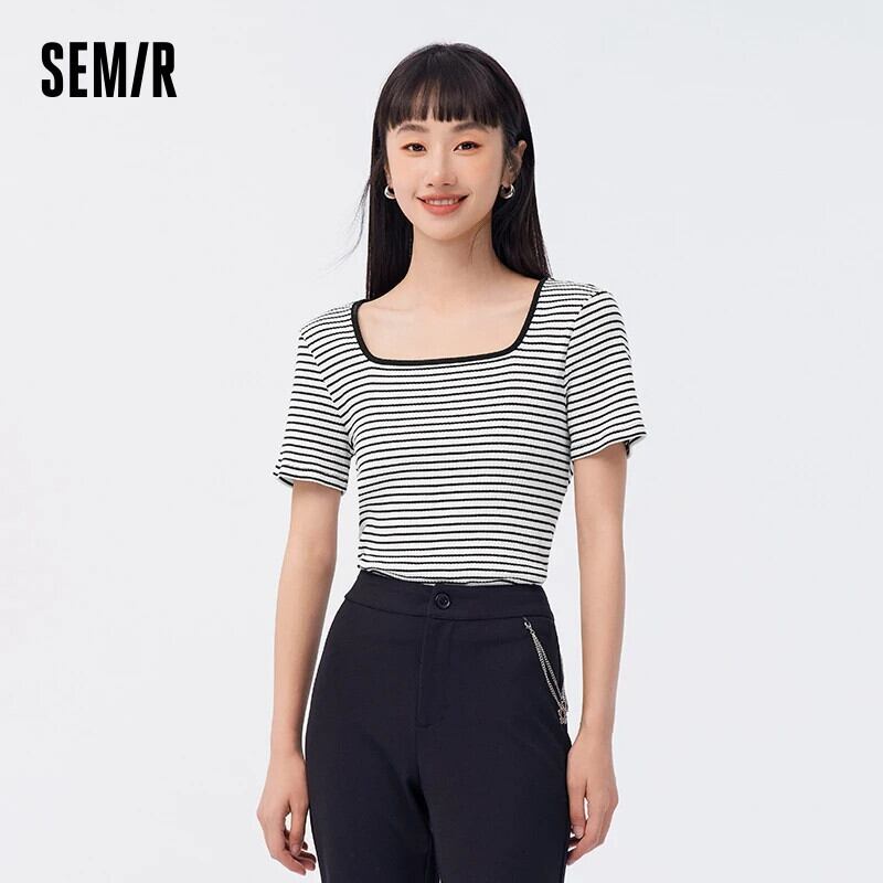 送料無料 Semir 半袖 Tシャツ女性ショートスクエアカラー 2023 夏タイトストライプシャツ気質 Tシャツ サマー 夏物 スクウェア AE1212777764221183290