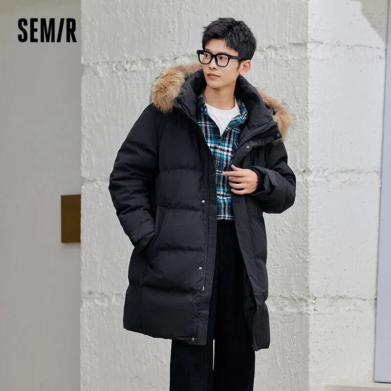 送料無料 Semir ダウンジャケットメンズ冬ルーズ厚いミッドレングス Comtable フード付きジャケット ウィンター 冬物 AE1212777743572187046