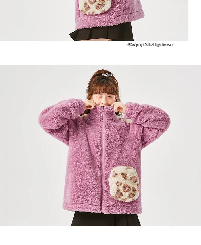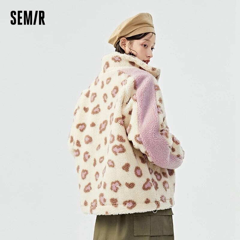 送料無料 Semir コート女性厚い模造ラムウールカラーマッチングルーズ冬着用 2021 冬プラスベルベットヒョウ柄甘いクール 大人ガーリー スウィート キュート カジュアル ウィンター 冬物 AE1212777766481077350
